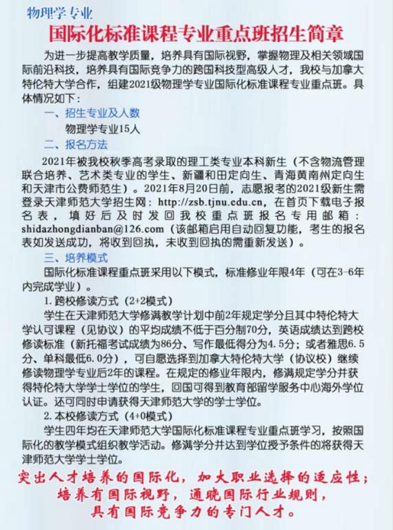 报名新生请于2021 年 8 月 20 日前,将《2021年国际化标准课程专业重点班报名表》发送到报名专用邮箱:shidazhongdianban@126.com(邮箱开启自动回复功能)