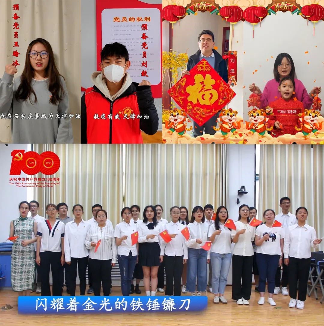 党支部在关键时间节点用视频发声。在庆祝中国共产党成立100周年时唱响《在灿烂阳光下》,在奥密克戎来临时为《天津加油》,在虎年来临之际《携家人大拜年》,传递网络好声音。同时支部以教学输出反促输入,撰写了以传播优秀文化,讲好物理故事为出发点的中国物理学史类书籍《物史今鉴》初稿,目前正在投稿修订中,已在公众号以四个专题推送了36期,2021年支部网络资源阅读量达10000人次。将新作品反哺中小学,党支部以甘为人梯的精神传承接力棒。