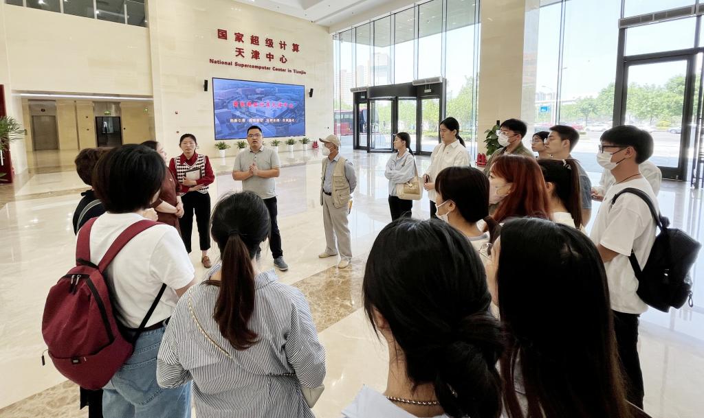 在国家超级计算天津中心,高性能计算部工程师为师生详细地介绍了国家超级计算的发展历程以及国家超级计算中心为打造超级计算自主创新能力高地的艰苦付出和不懈努力。师生跟随工程师们参观了天河三号运行机房,深入了解了以超算驱动全面服务科技创新、产业升级和以科教协同推动科技、教育、人才一体化发展等模块内容。工程师和师生党员们从科学研究、人才培养和就业实习等方面展开充分沟通。双方初步达成进一步合作交流意向。