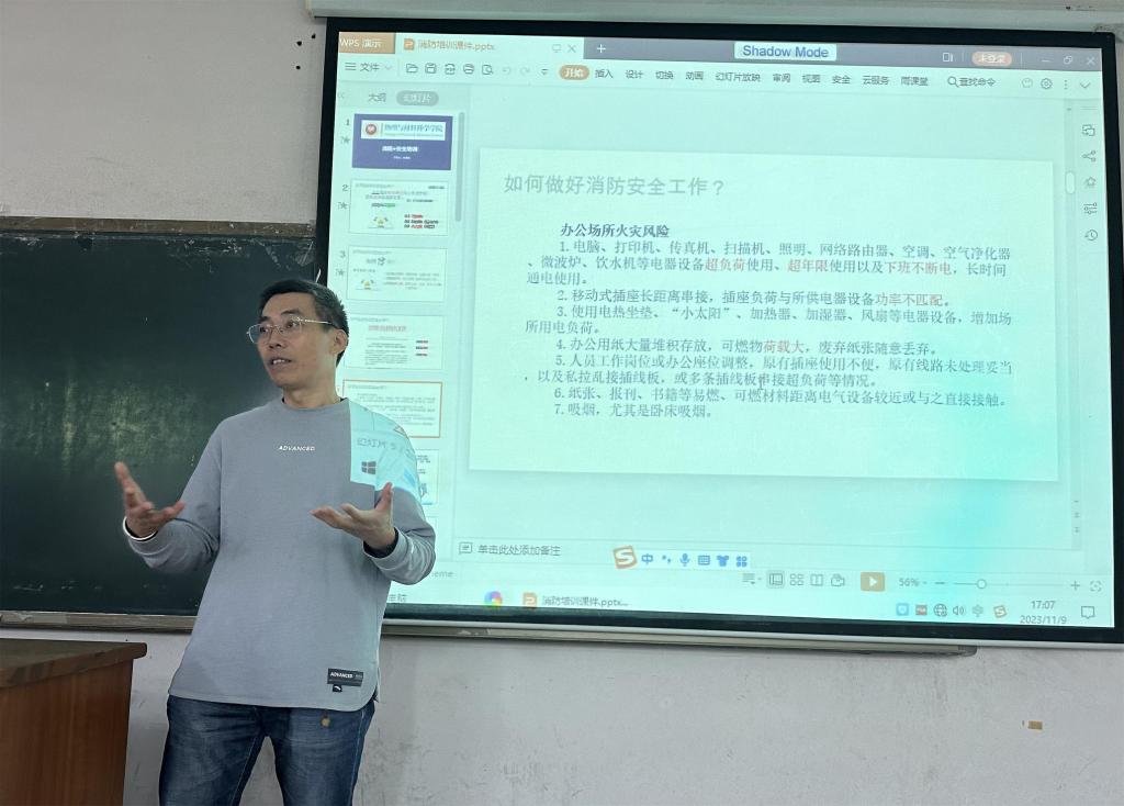 11月9日下午,公司在明理楼D311室召集全体教工大会,会上吴景波副经理进行了消防安全的宣讲。11月9日晚,吴景波副经理为公司全体研究生进行了消防及实验室安全方面的讲座。院学工办在11月9日-15日之间,组织各本科班团支部积极开展以消防安全为主题的团日活动。另外,还利用“太阳集团tyc9728物理青年”微信公众号推送了《预防为主,生命至上》的消防主题宣传推文。