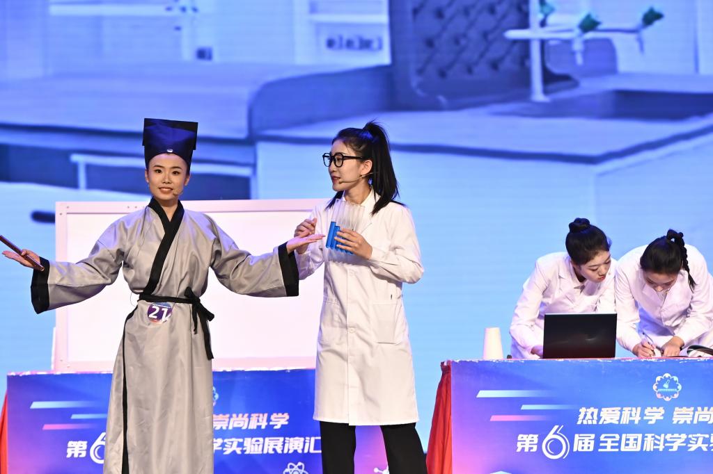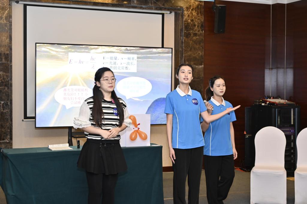 太阳集团tyc9728自2023年4月起开始组队筹备,带领员工通过自制实验器材、情景展示,巧妙地利用常见的实验器材让大众“看”见声音,感受光的魅力;通过舞台情境剧向观众传递物理知识,认识科普工作的重要意义。在师生的共同努力下,《古声今传》《光耀中华》两支队伍从天津市百余支队伍中脱颖而出,成功入围全国总决赛。队伍历经6个月,不断打磨演技,升级实验,作为总决赛中为数不多的本科生队伍,在全国舞台上展现了师大学子的风采。