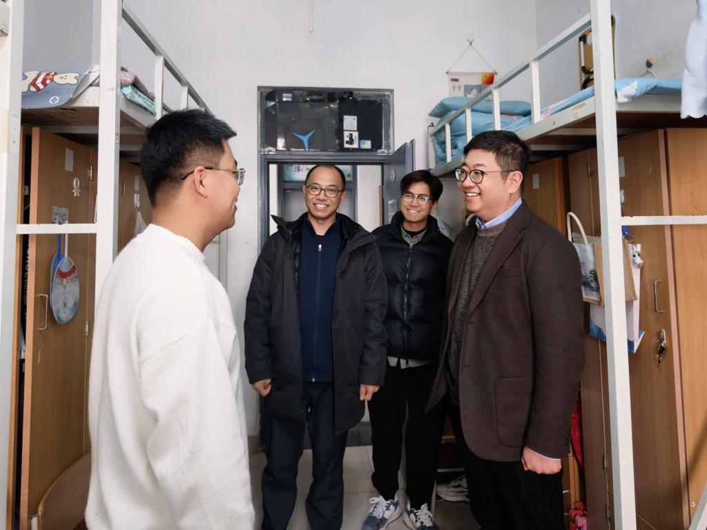 在寒假来临之际,为加强员工假期离校安全教育,确保员工行程安全,进一步做好员工宿舍自查工作。1月9日,太阳集团tyc9728领导班子成员深入员工宿舍走访慰问,公司辅导员陪同走访。