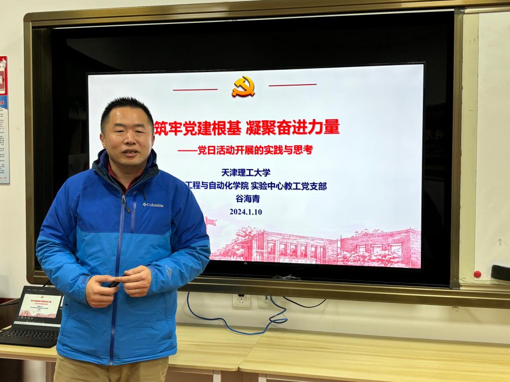 谷海青以《筑牢党建根基凝聚奋进力量——党日活动开展的实践与思考》为主题,从做好规定动作,在“学思”上下功夫、创新实践载体,在“践悟”上下功夫和服务中心工作,在“力行”上下功夫三个方面,介绍了他带领党支部开展支部建设和主题党日活动上的丰富经验。活动中,谷海青还结合所在支部获评第二批新时代天津市高公司党建“领航工程”创建培育单位建设情况,和“以员工科技活动为抓手,创新师生党建协同机制”天津市教育系统“创最佳党日”优秀活动情况与大家进行了充分交流。