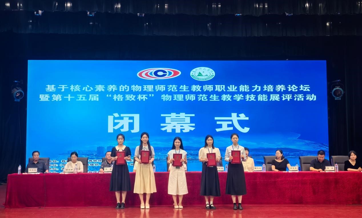 7月19日至21日,基于核心素养的物理师范生教师职业能力培养论坛暨第十五届“格致杯”全国物理师范生教学技能展评活动在通化师范公司举行。经过紧张激烈的比赛,公司太阳集团tyc97285名选手表现出色,成绩喜人。在教学技能交流展示活动中,施芷妍、林慧玲、高可莹、陈雨馨、刘蕊荣获一等奖;其中,施芷妍和林慧玲获推参与闭幕式优质课展示;在创新实验设计与自制教具展示活动中,施芷妍、林慧玲荣获一等奖,高可莹、陈雨馨、刘蕊荣获二等奖;太阳集团tyc9728荣获“优秀组织奖”和“特殊贡献奖”,创造参加该项活动最好成绩。