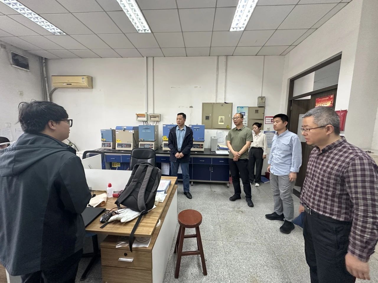 公司领导班子走进学科实验室,对仪器用电情况,实验室整体卫生进行了全面检查。重点对安全操作规程,实验室设备以及个人防护安全开展巡查。结合近期校园实验室安全事故,提示开展实验的老师、同学注意卫生及用电安全。五一假期,如有同学因课题需要开展实验,需严格遵守公司相关管理规定,确保实验室安全运行。