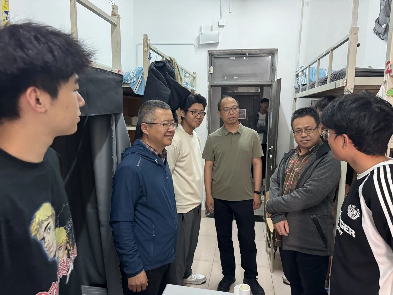 在员工公寓3号楼、28号楼,公司领导班子成员、员工工作辅导员走进2023级、2024级员工宿舍,与同学们亲切交流,细致询问大家假期去向,提示外出员工注意校外安全。针对假期留宿同学,强调要注意安全用电,禁止使用违规电器,消除安全隐患。